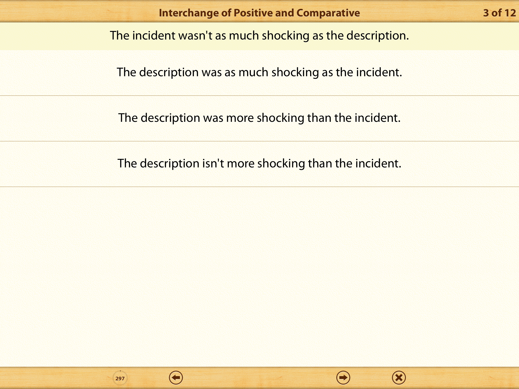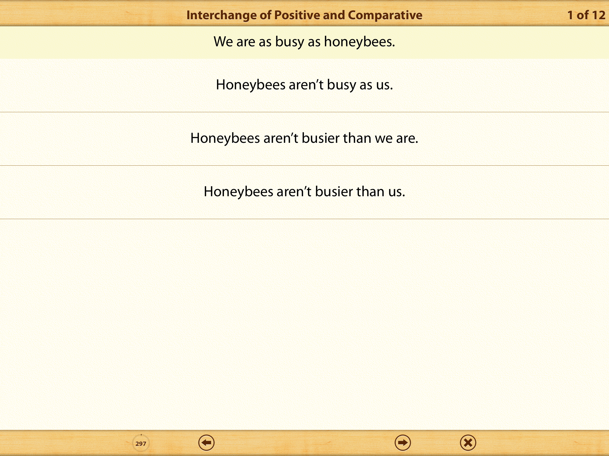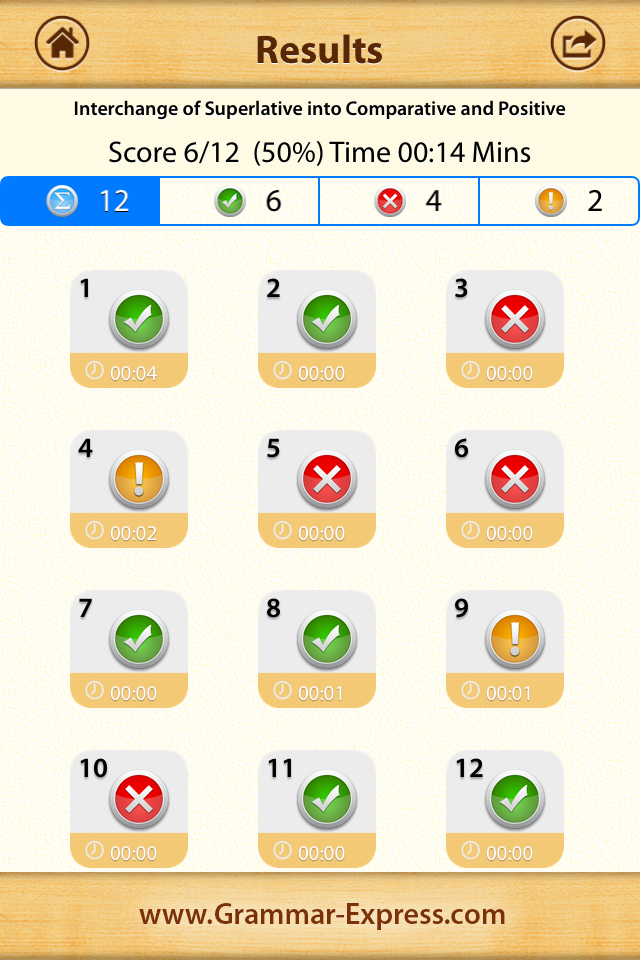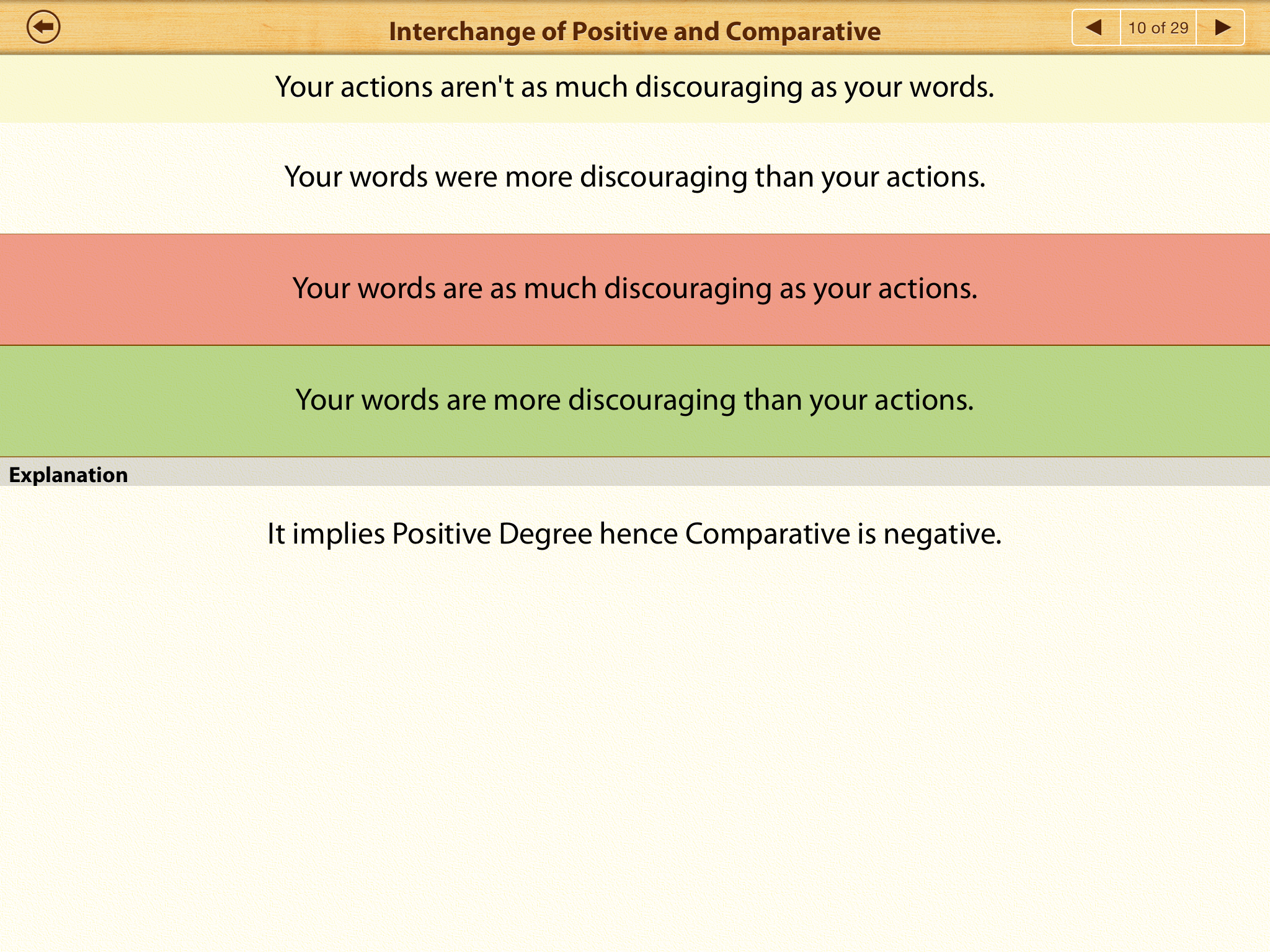 Grammar Express: Degrees is the complete course in mastering the use of variety of expressions in writing English. It contains over 26 pages of lessons explaining how to change a sentence from one grammatical form into another without changing its meaning with several examples. Its a valuable exercise for it teaches you how to introduce variety in writing English. You can learn the grammar rules, study the examples and test their understanding by taking quiz. At the end of quiz the user is presented with test summery and explanation for each test question. Grammar Express can help you to improve your understanding of Degrees and make use of them in your writing for greater effect. Custom timer setting can assist you to improve response times under exam time constraints. Research suggest that kids and adults learn most quickly when playing learning games with real-time error-feedback. Grammar Express provides learners with an opportunity to improve strategies for grammar success.
