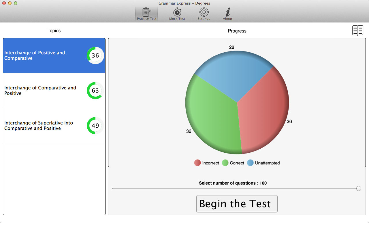 • A new module, “Progress Meter” keeps track of how you are performing in a particular topic or mock test.