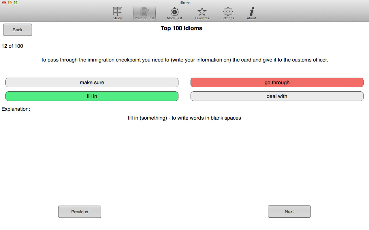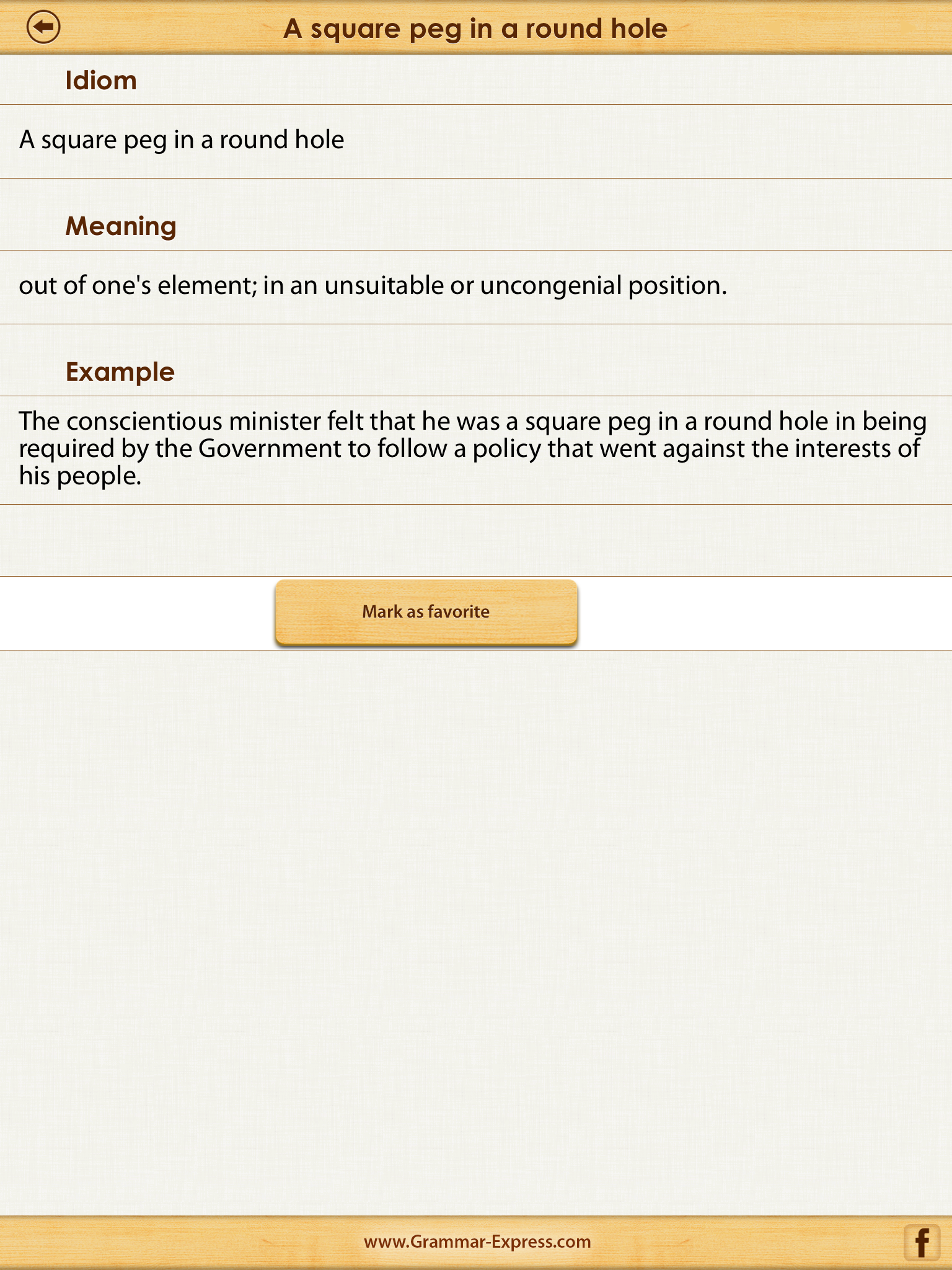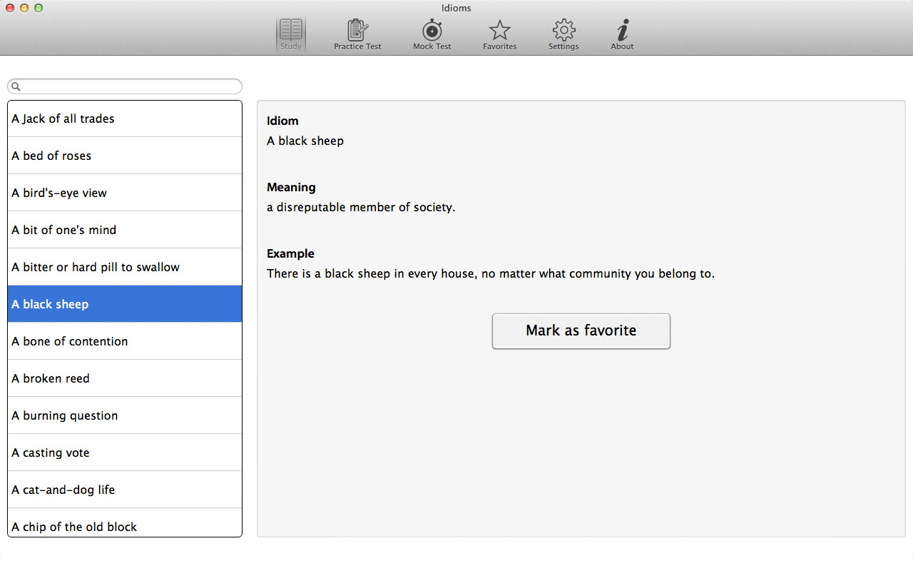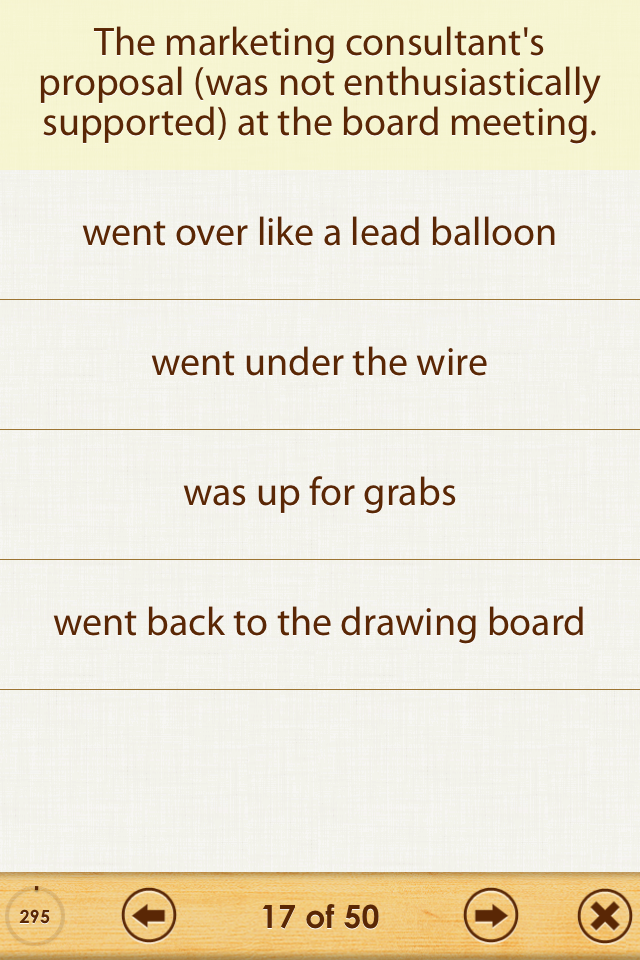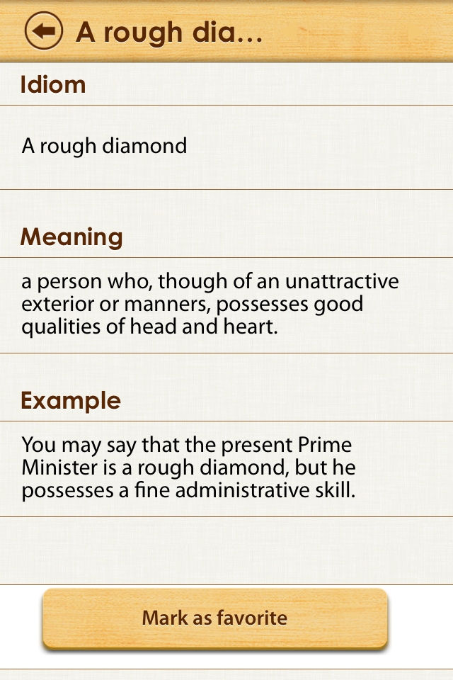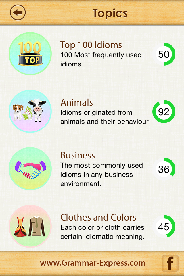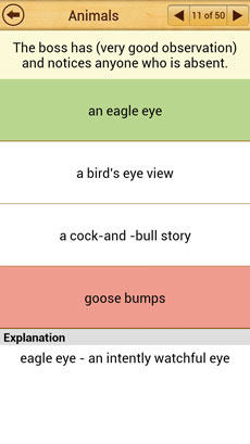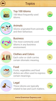 Idioms are the real guts of English. Idioms app provides learners with an opportunity to improve strategies for successfully utilising native level expressions