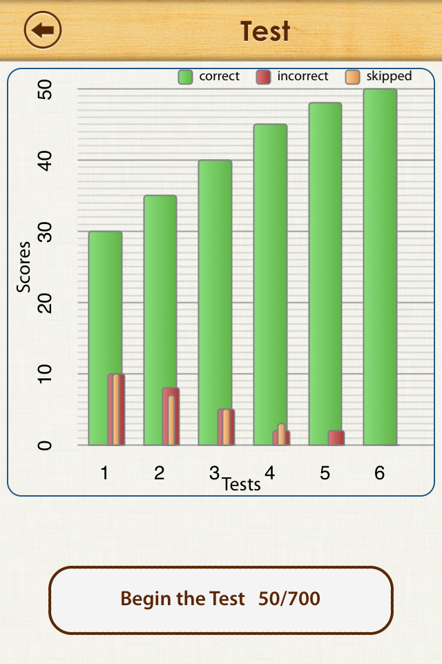 A summary of the practice test is presented at the end of each test. It shows you the time you took, the score, which questions you answered correctly and where you were wrong. And yes, you can E-MAIL the results.