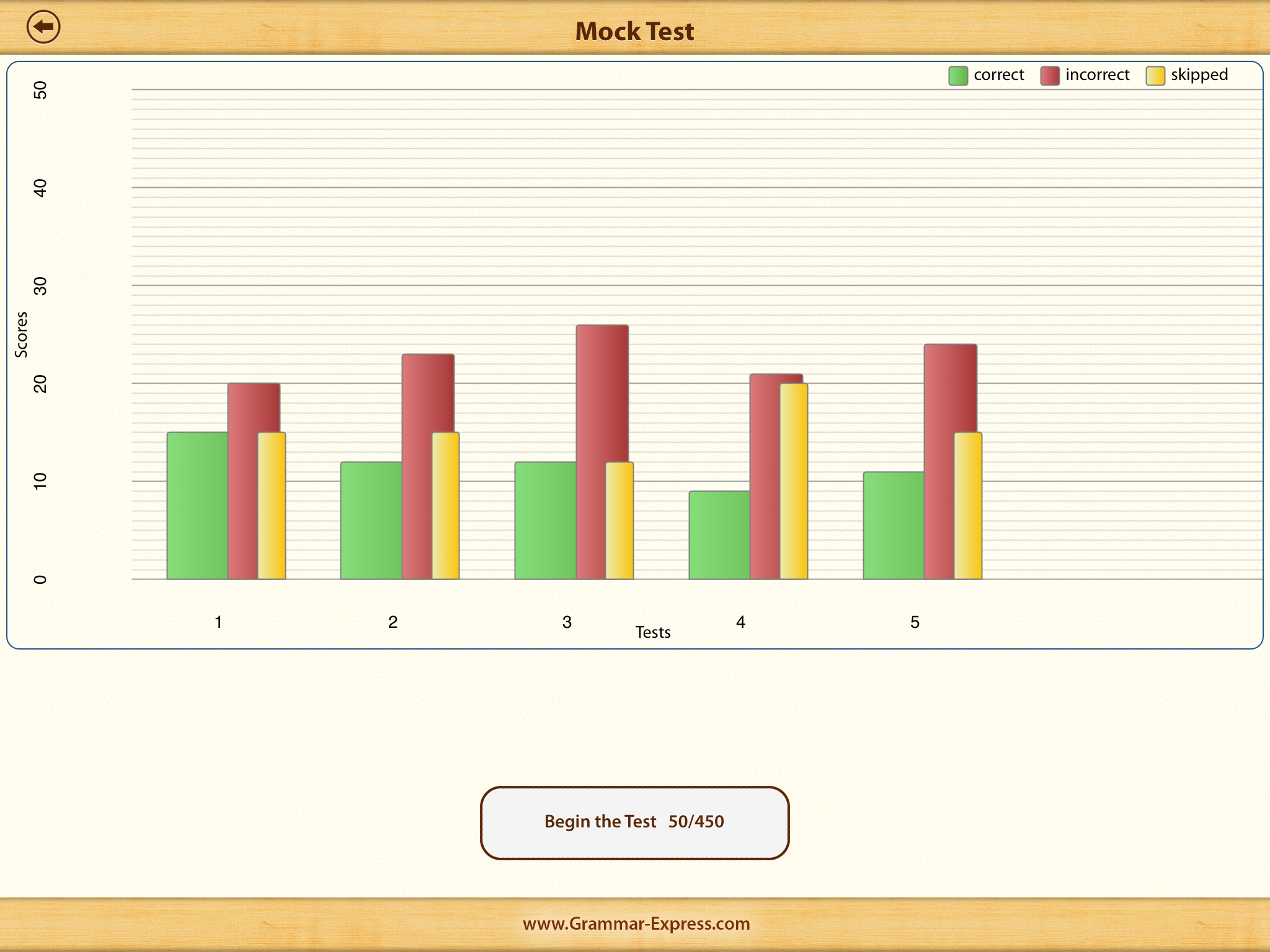 A summary of the practice test is presented at the end of each test. It shows you the time you took, the score, which questions you answered correctly and where you were wrong.