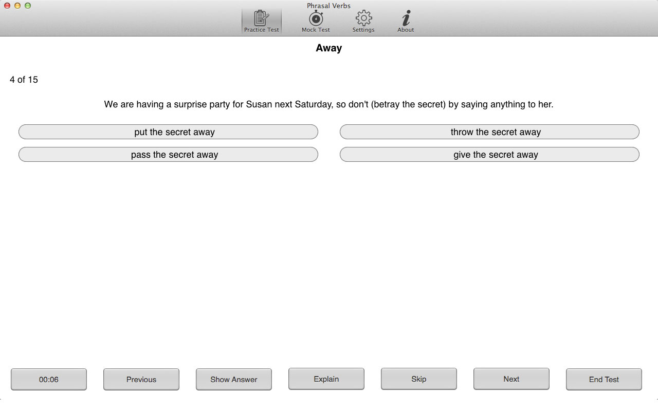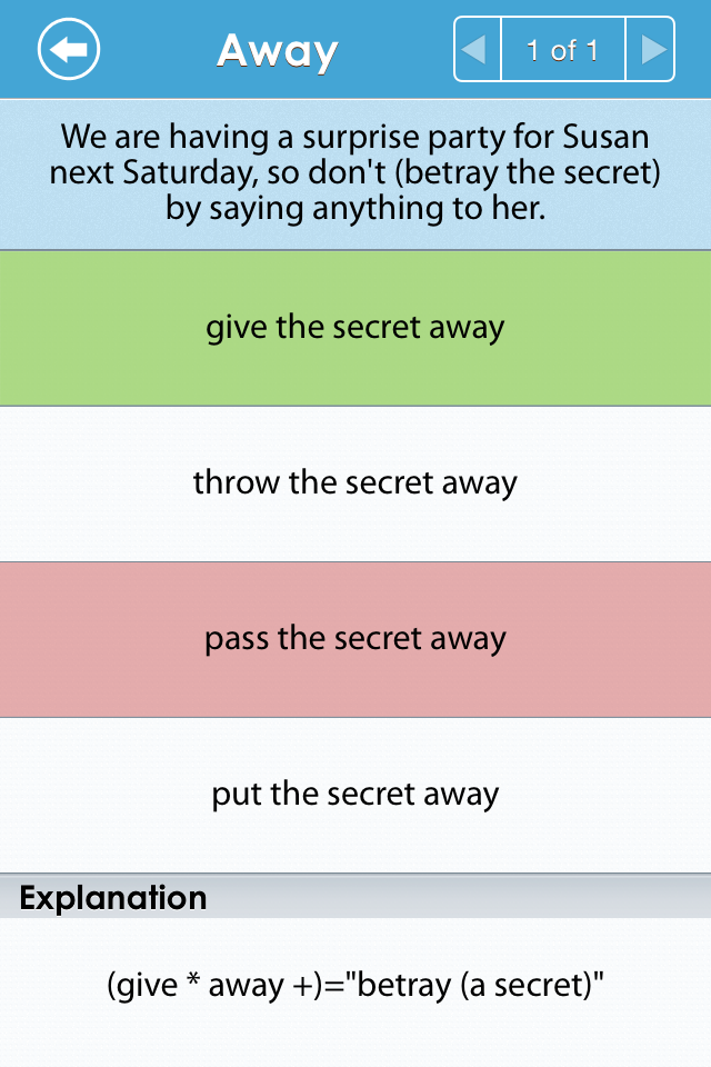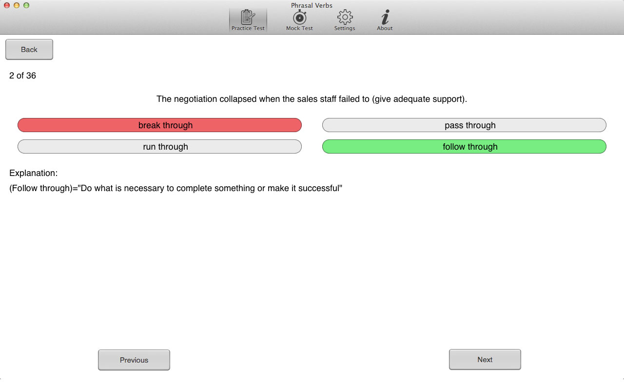 Phrasal verbs are very common in spoken and written English so we need them to understand. This app helps you with just that.